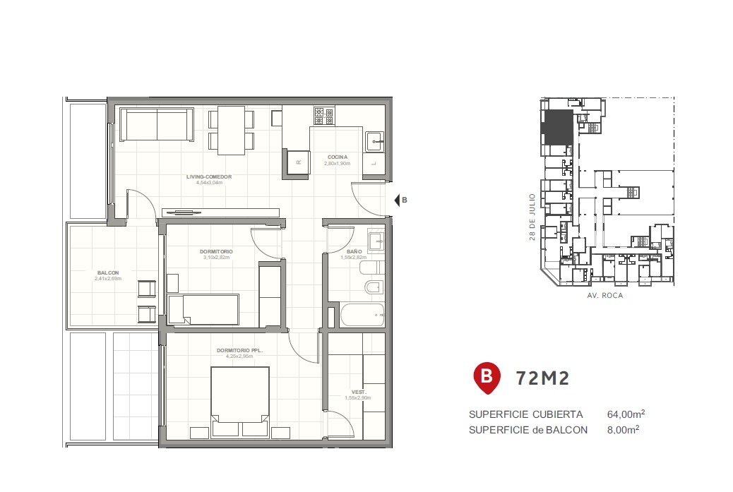 Superficie total: 72,00 m²